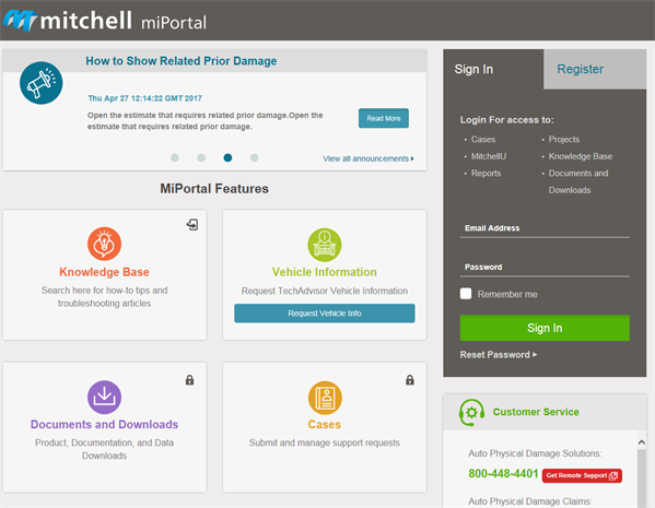 miPortal (www.mitchell.com/support) gives you immediate access to technical solutions, product documentation, online bill pay, and more. miPortal is conveniently available from any computer with an Internet connection, and most mobile devices.