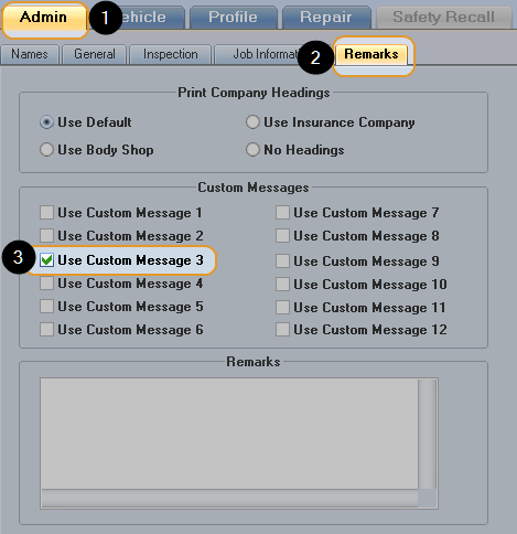 - On the Admin tab, click the Remarks subtab.