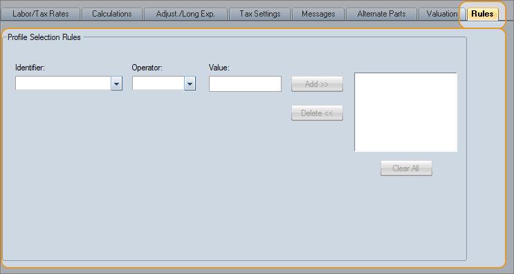 You might need to use Rules because your business partner requires certain rates for particular vehicle types. Perhaps the Department of Insurance has mandated certain rates based on vehicle age or mileage. In these cases, it's important that the correct profile is used when creating the estimate.
