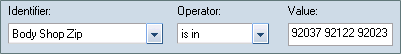 - Select the Identifier. In this example, the Identifier is Body Shop ZIP.