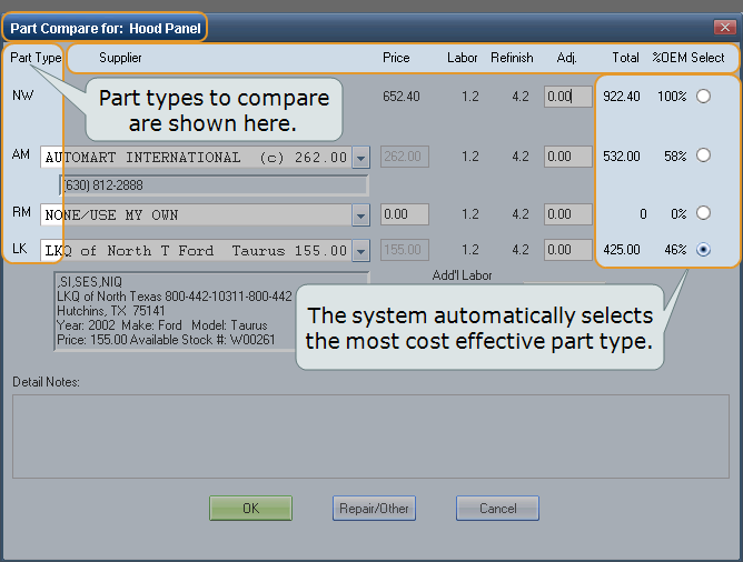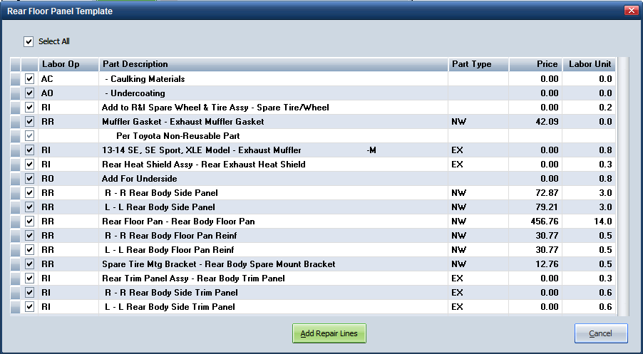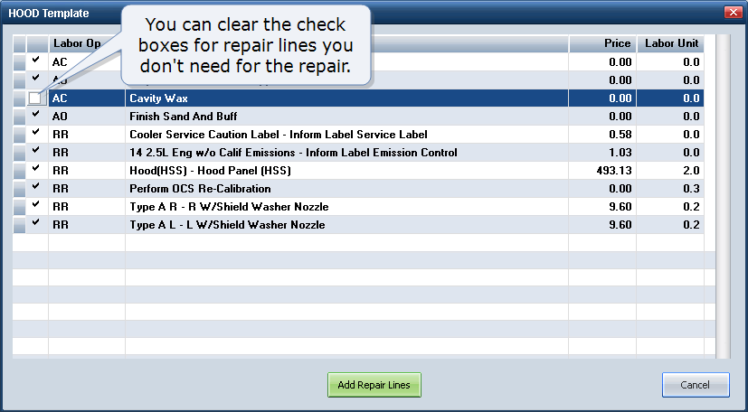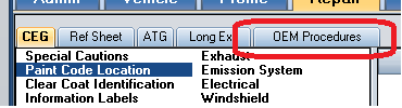 The OEM Procedures tab is basically a different way to add repair lines. You can add repair lines individually from the CEG, Ref Sheet, and Long Exp (Long Expansion) tabs. When you add them using the OEM Procedures tab, you have the benefit of adding them from one location, all at one time.