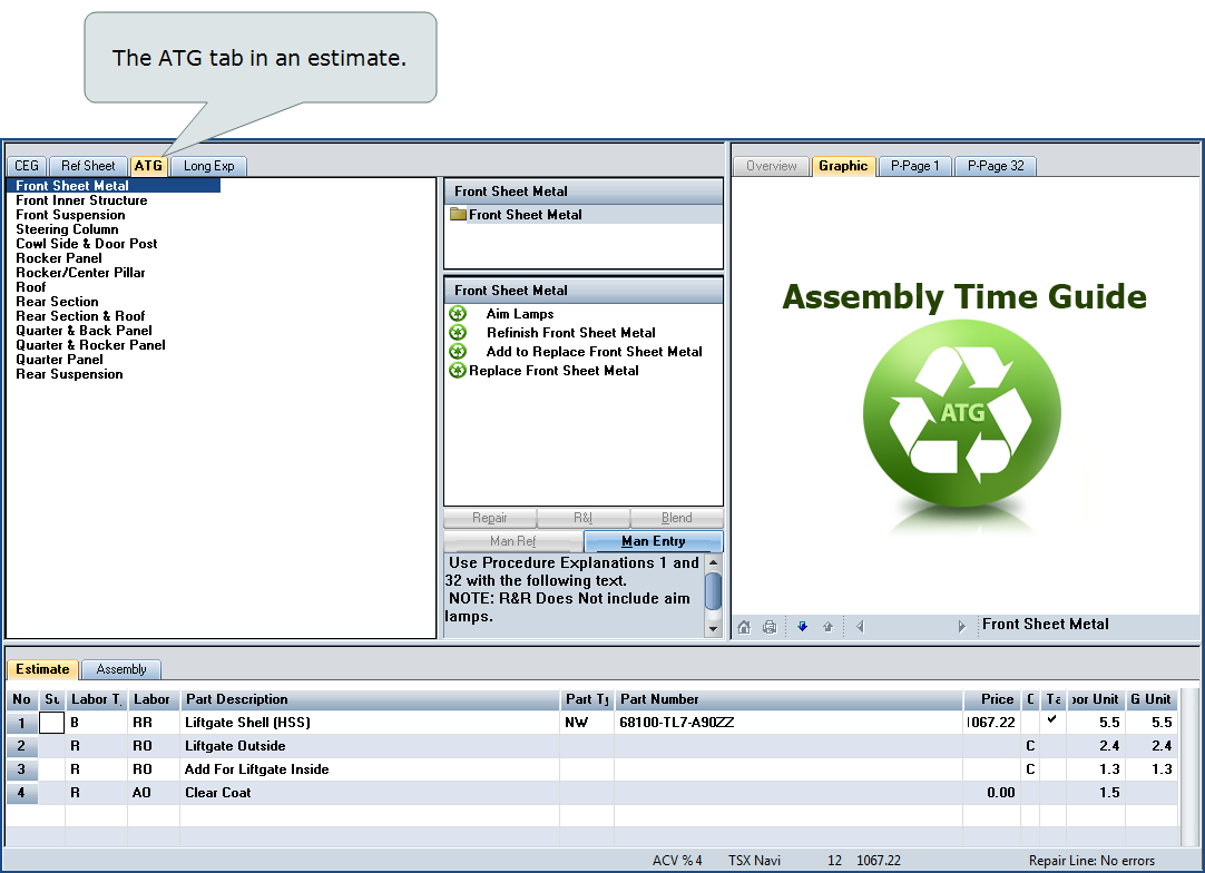 Use QRP (Quality Recycled Parts) to add part prices for ATG parts to your estimates.
