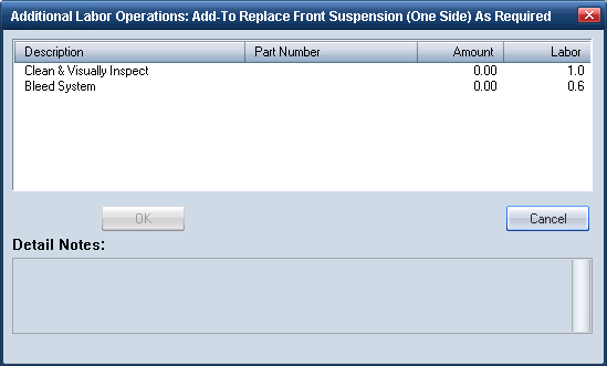 - Click OK. If additional labor is needed for the repair (for example: "clean and visually inspect"), the Additional Labor Operations dialog box appears.