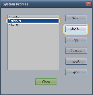 On the System Profiles dialog box, select a profile that you want to use for MAPP search, and click Modify.