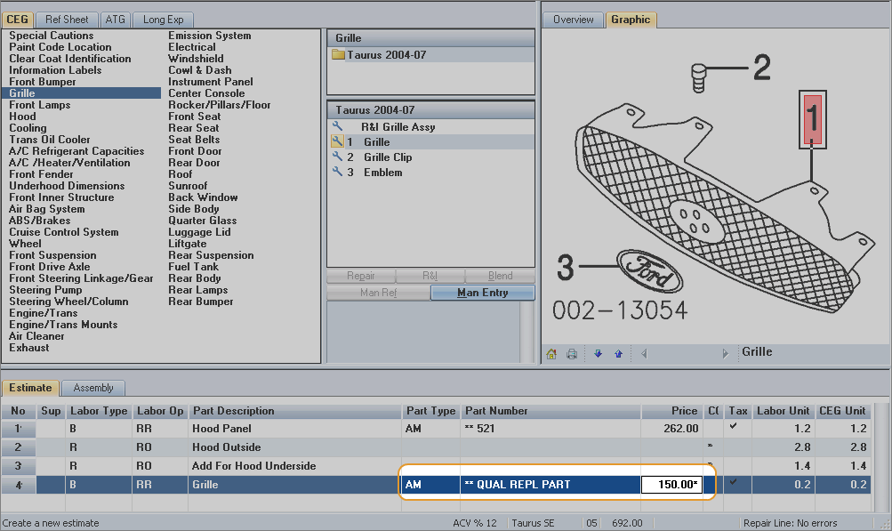 You can manually add alternate parts to your estimate. You might do this if you don't have MAPP installed or if the MAPP search didn't find an alternate part, but you know where you can get one.