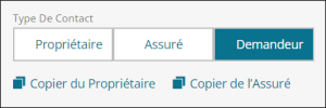 - Dans la section Type de partie, sélectionnez le type de contact : Propriétaire, assuré ou demandeur.